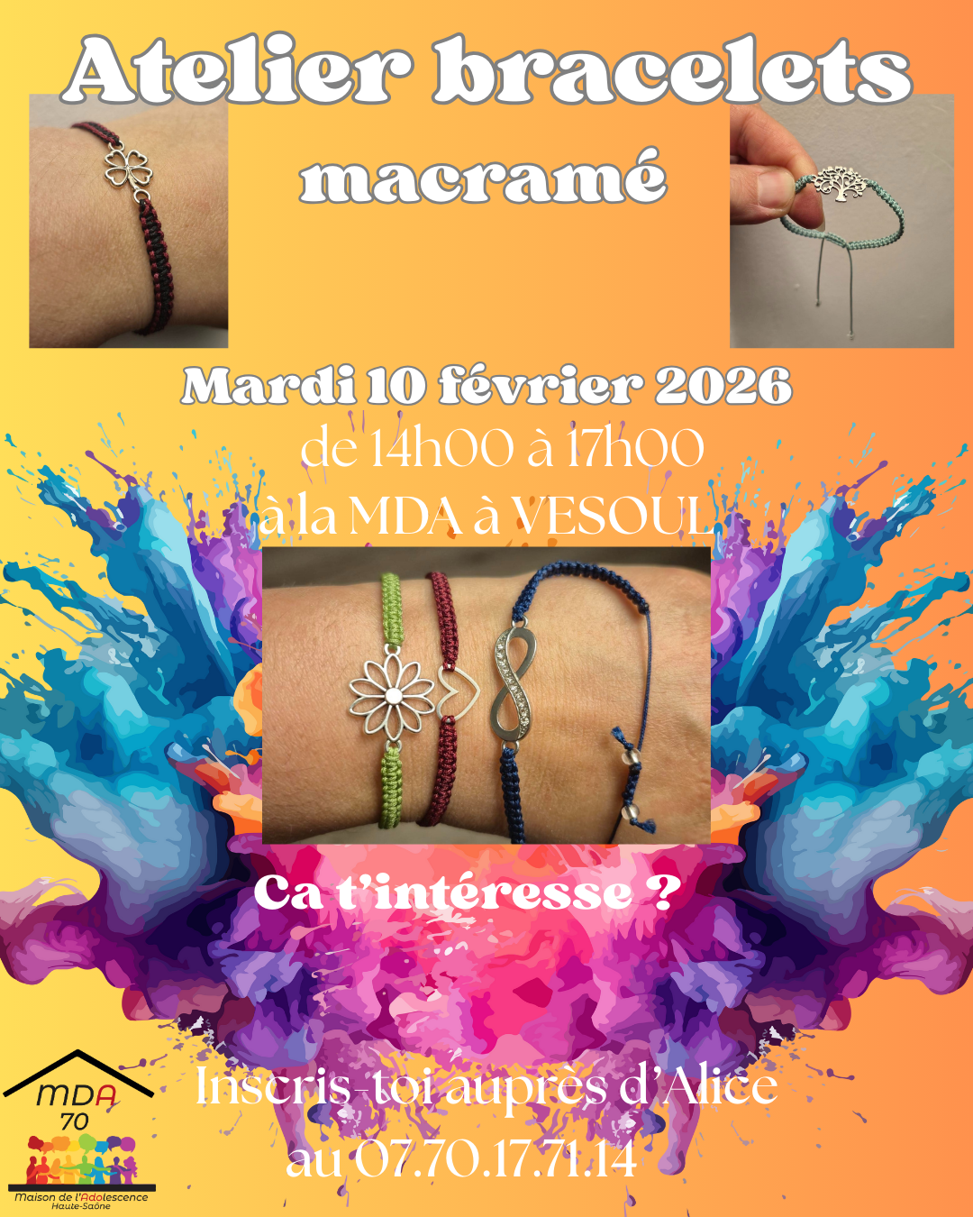 Mardi 10/02 de 14h00 à 17h00 à la MDA à Vesoul