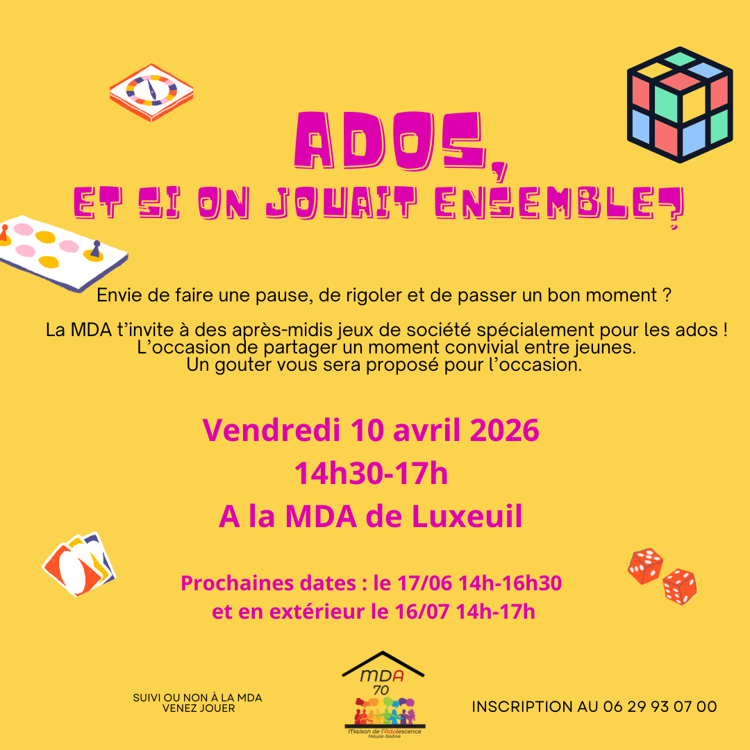 Vendredi 10/04 de 14h30 à 17h00 à la MDA à Luxeuil
