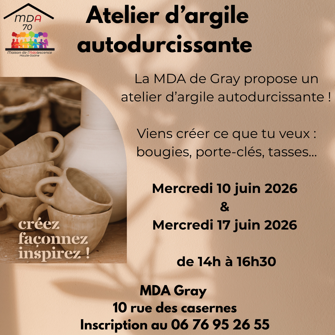 Mercredi 13/05 de 14h00 à 17h00 à la MDA à Jussey