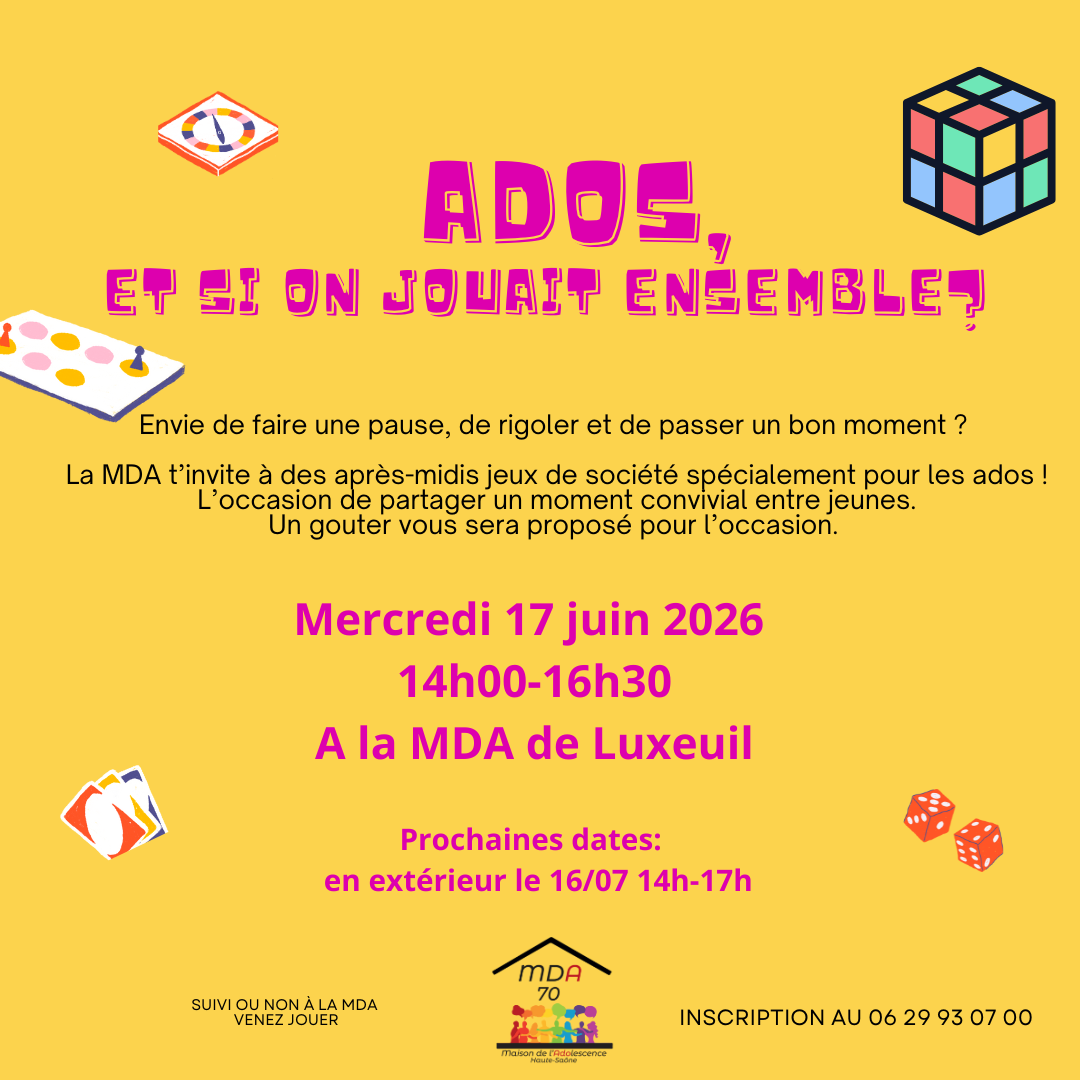 Mercredi 17/06 de 14h30 à 17h00 à la MDA à Luxeuil
