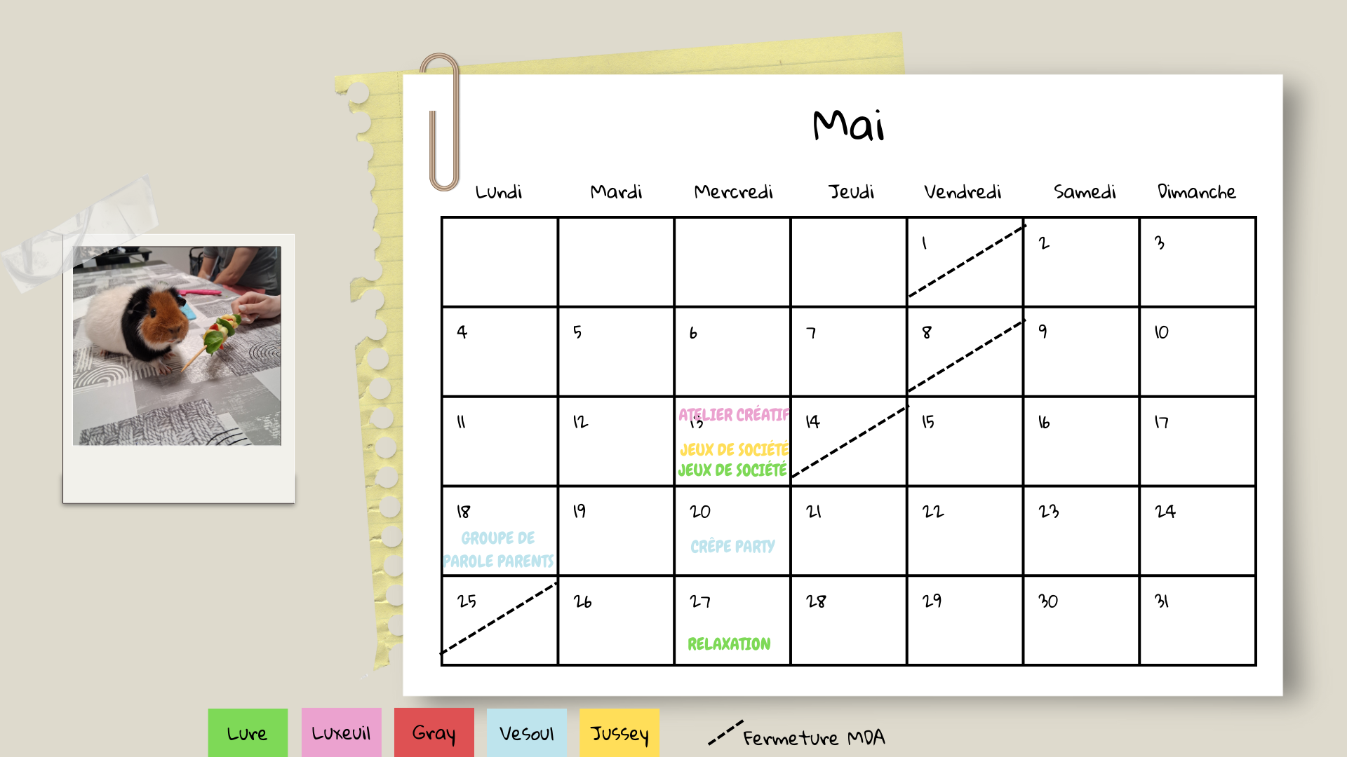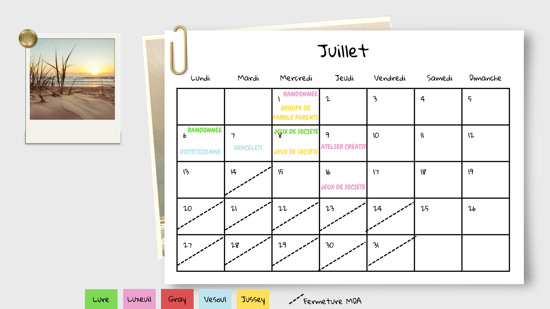 Cliquez sur le mois souhaité pour voir le planning des activités et fermetures